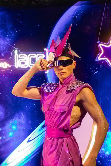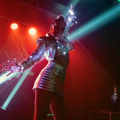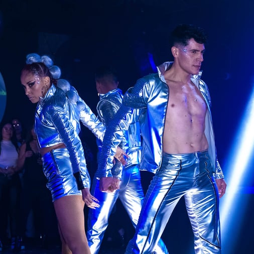 Deja que la música electrónica te guíe en un viaje futurista a través del tiempo. Un show de baile impresionante te sumergirá en una experiencia llena de energía, historia y vanguardia.