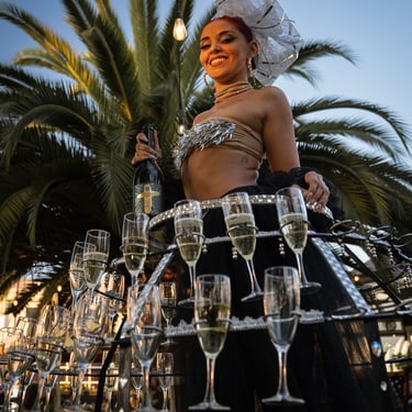 ¡La entrada triunfal a tu celebración con un toque de alta costura y burbujas!