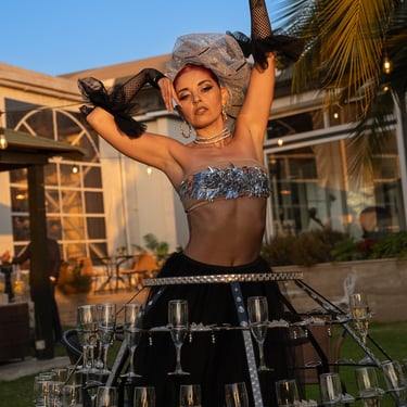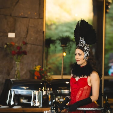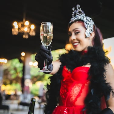 Nuestra anfitriona con su sonrisa contagiosa y su atuendo deslumbrante, se convierte en el centro de todas las miradas, ofreciendo una bienvenida inolvidable y un brindis que tus invitados recordarán para siempre.