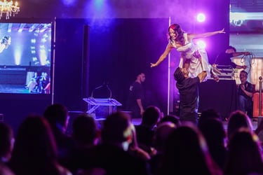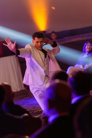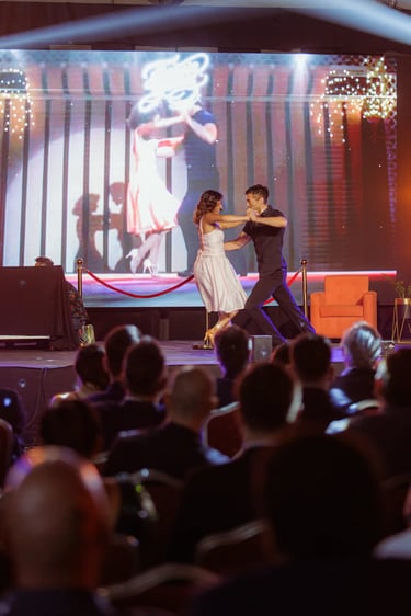 Una puesta en escena donde los protagonistas son acompañados por bailarines profesionales, creando una atmósfera elegante, cuidada y profundamente emotiva para abrir la celebración.